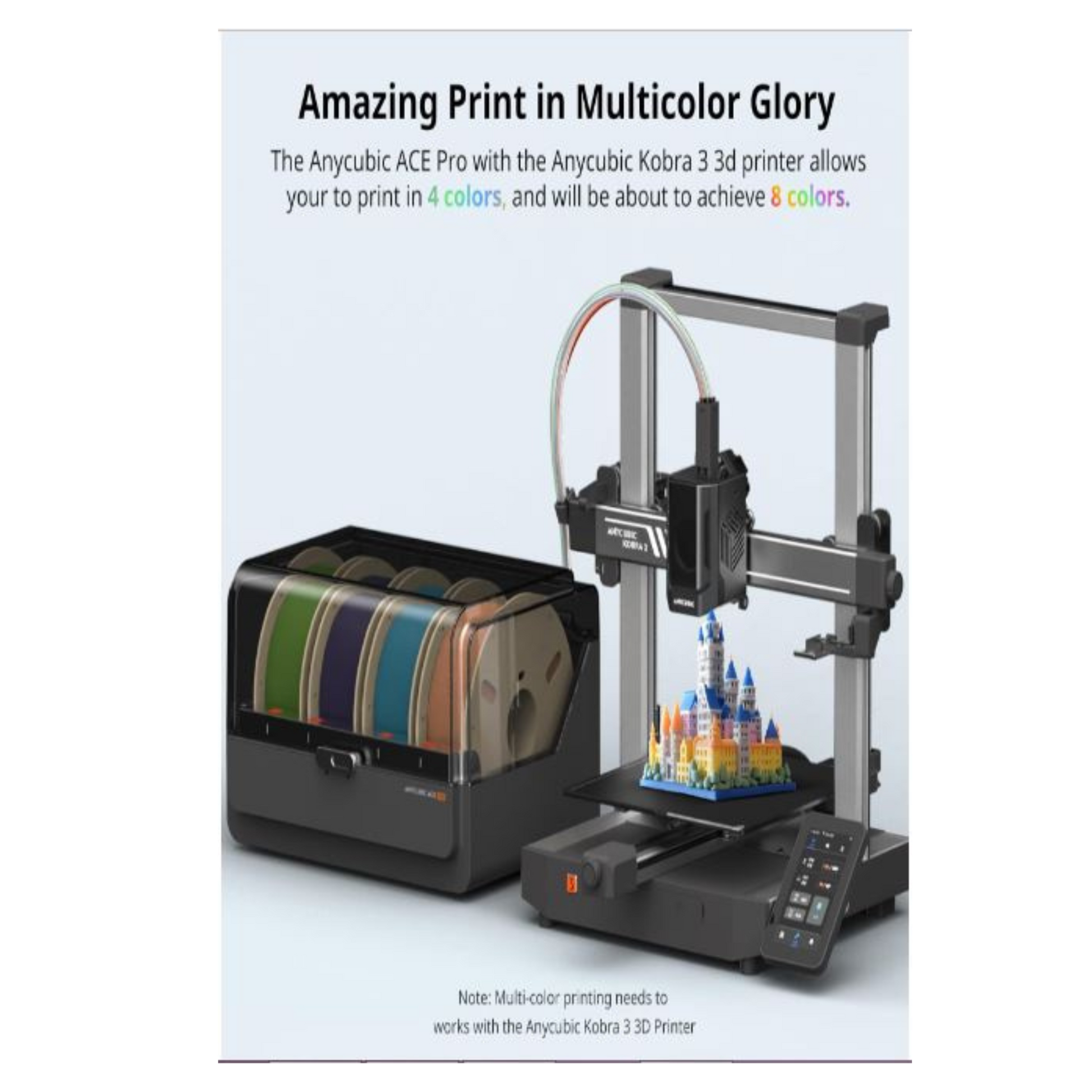 The Anycubic Kobra 3 ACE Pro is a high-performance, multi-color FDM 3D printer designed for creators, hobbyists, professionals, and production users who need speed, accuracy, and advanced filament handling. With a powerful motion system, large build volume, and intelligent ACE Pro filament engine, the Kobra 3 delivers smooth, detailed, and reliable printing in every project.