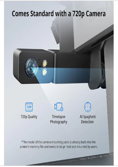 Integrated camera for print monitoring; potential for remote status viewing, time-lapse capture